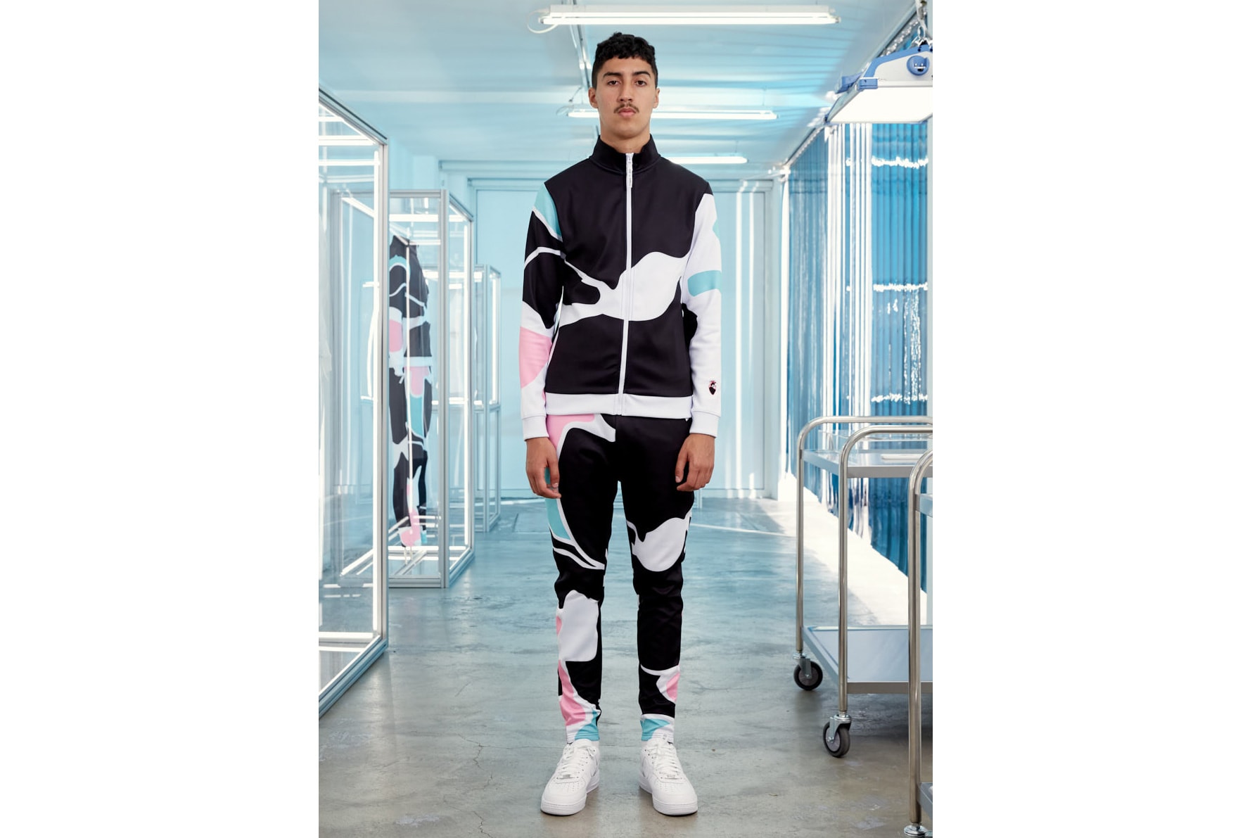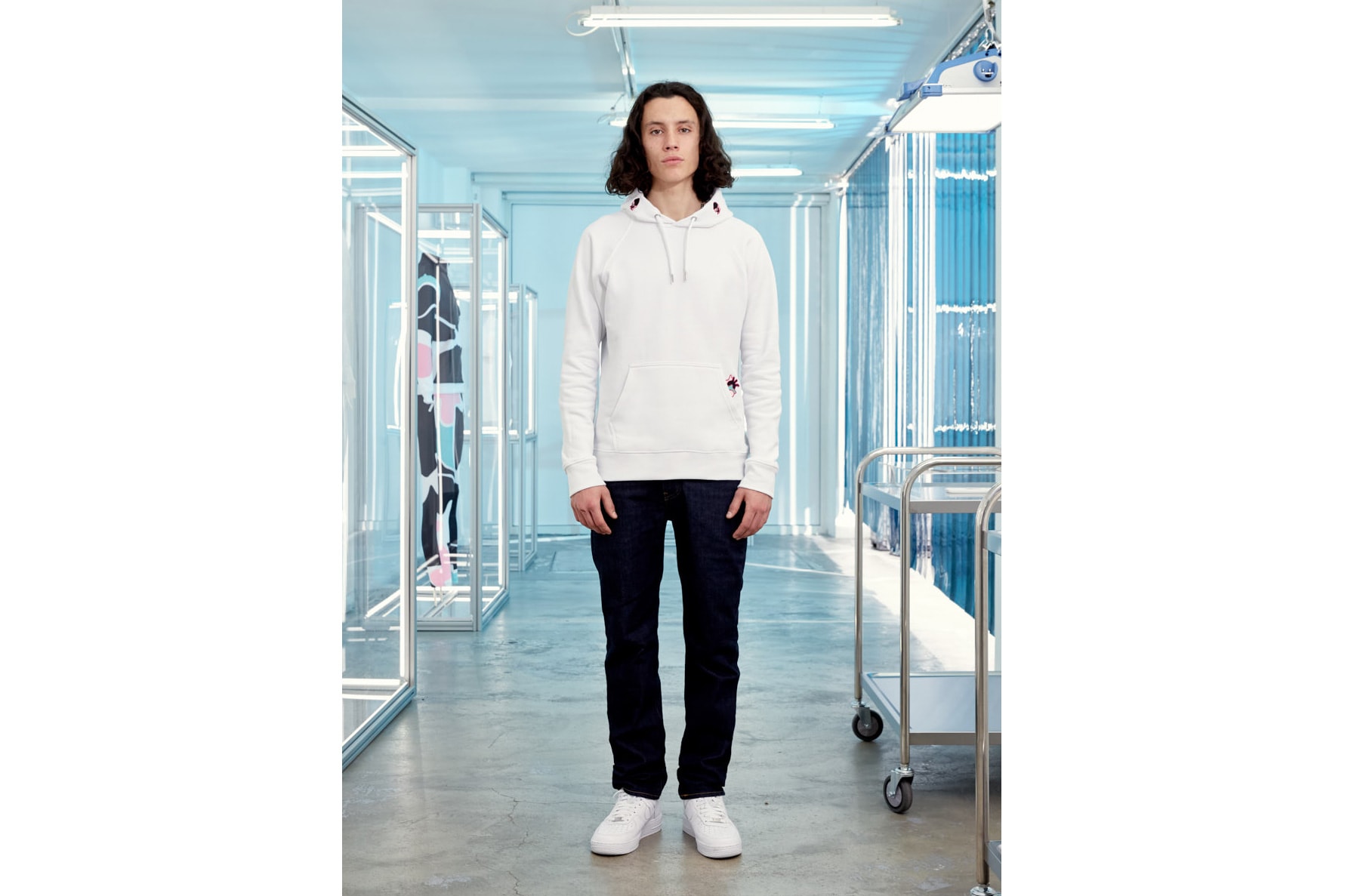Initially unveiled during the laboratory-like pop-up designed by AVOIR, the collection is comprised of tracksuits dressed in either bold graphic patterns of high-vis pink, turquoise and navy blue or a more fresh all-white iteration. Elsewhere essential everyday items such as T-shirts, hoodies and hats have also been included, all which sport PNL’s anatomical heart emblem scattered about. In terms of accessories, an all-white cylindrical sports bag, lighters and iPhone cases are offered up.