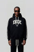 Black Dix Hoodie featuring a signature embroidered logo at the chest, reinforced silicone patch detailing, and contrasting white side stripes for a refined athletic aesthetic. Premium construction designed for everyday wear with distinctive brand markers that set it apart.
