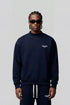 Navy Seventeen Sports Crewneck featuring a mid-high crew neckline with premium silicone 3D label detailing. Crafted with soft fleece lining for warmth and comfort, this piece delivers both style and functionality for everyday wear or athletic layering. The structured silhouette and quality construction make it a versatile staple for your wardrobe.